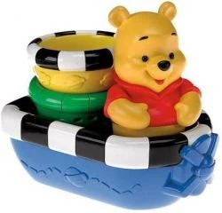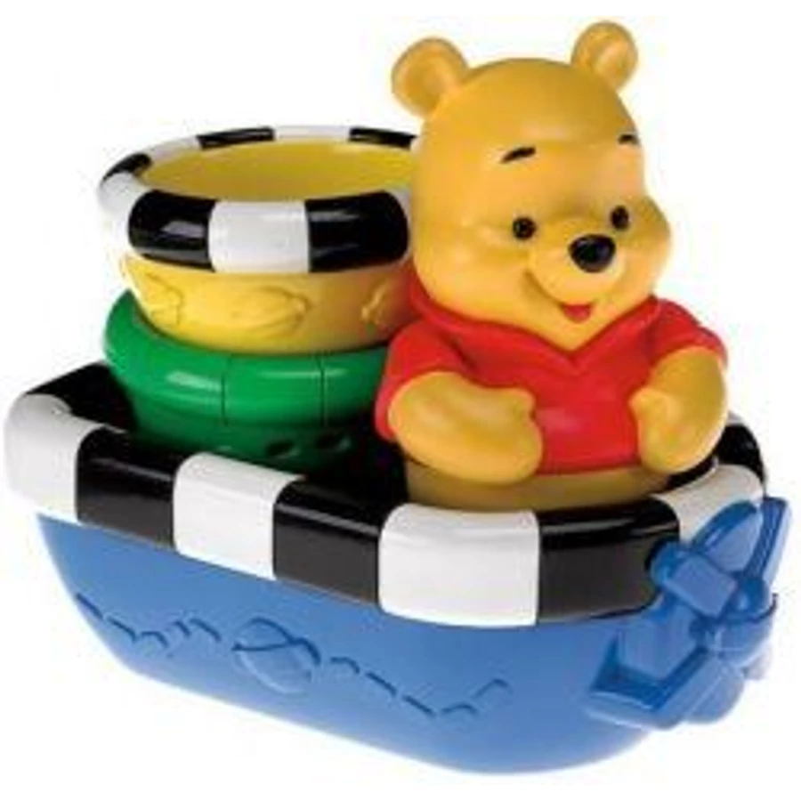 Micimackó hajójával együtt úszik a vízen, és két játék gazdagítja még a babát játszáskor. Egy szűrő, és egy tölcsér, melynek segítségével a baba ki sem akar szállni a vízből.