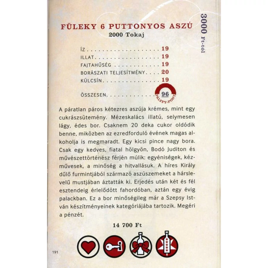 Egy izgalmas kísérlet igazán színvonalas beteljesülését tarthatja kezében a kedves olvasó. Egy hiánypótló mű, amely úgy tesz tanúbizonyságot elhivatottságról és szakértelemről, hogy közben mindenki számára közérthető stílusban és igényes tálalással segít eligazodni a sokszor még a szakembereknek is komoly fejfájást okozó kérdésekben. Ráadásul kitűnő befektetés, mert akár már egy vacsora alatt is megtérülhet az ára, ha tudjuk, hogy az ételünkhöz milyen bort érdemes választanunk.