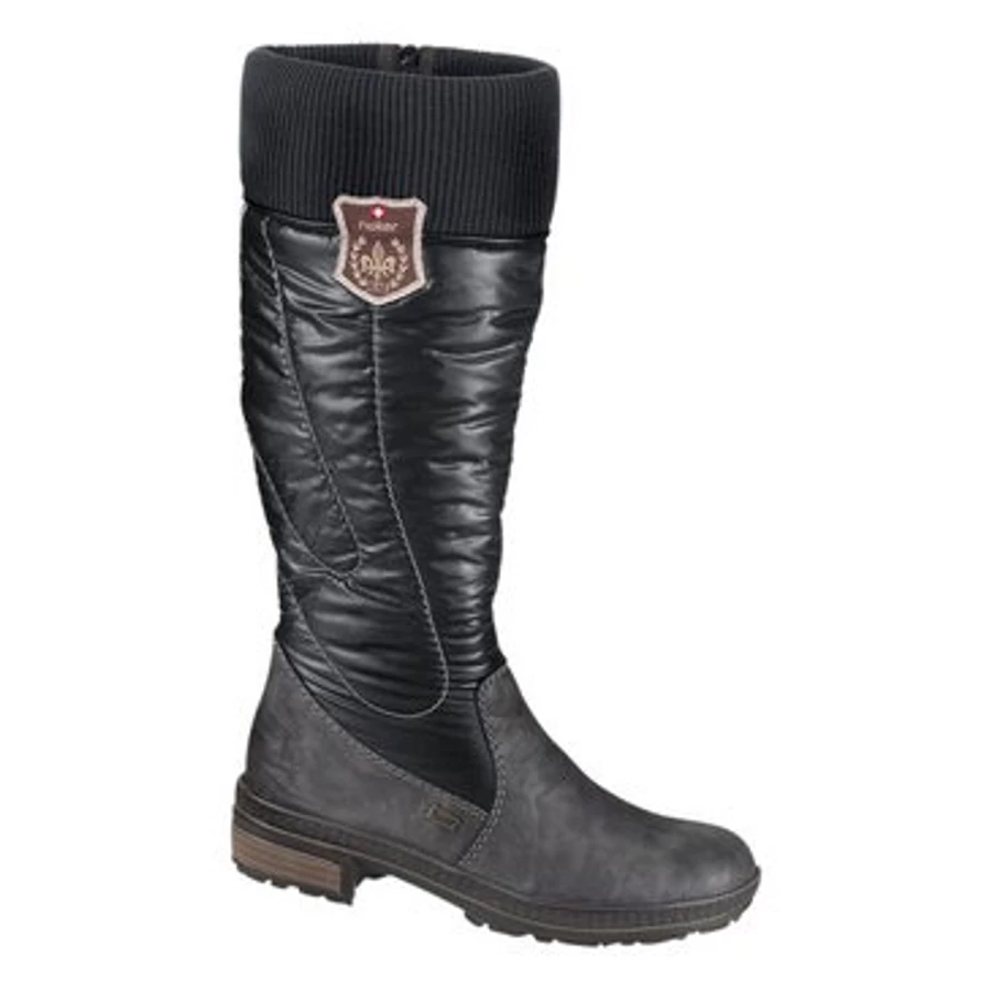 RIEKER modellek cipzárral, puha műbőrből, tiszta nyírt gyapjú béléssel, textil fedőtalppal, rugalmas, szintetikus anyagból készült járótalppal, 25 mm-es sarokkal.